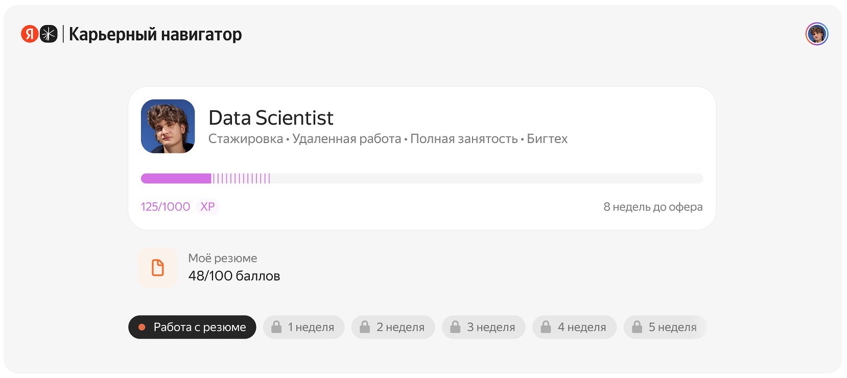 Для составления индивидуального плана пользователю необходимо создать цифровой профиль и ответить на уточняющие вопросы ИИ-помощника. После этого в личном кабинете появится интерактивный маршрут, включающий рекомендации по подготовке резюме, вакансии от более чем 4000 партнеров и персональные советы по трудоустройству. Сервис опирается на опыт тысяч студентов, нашедших работу с помощью карьерного центра «Яндекс Практикума». В 2025 г. 80% таких студентов достигали цели в течение полугода.